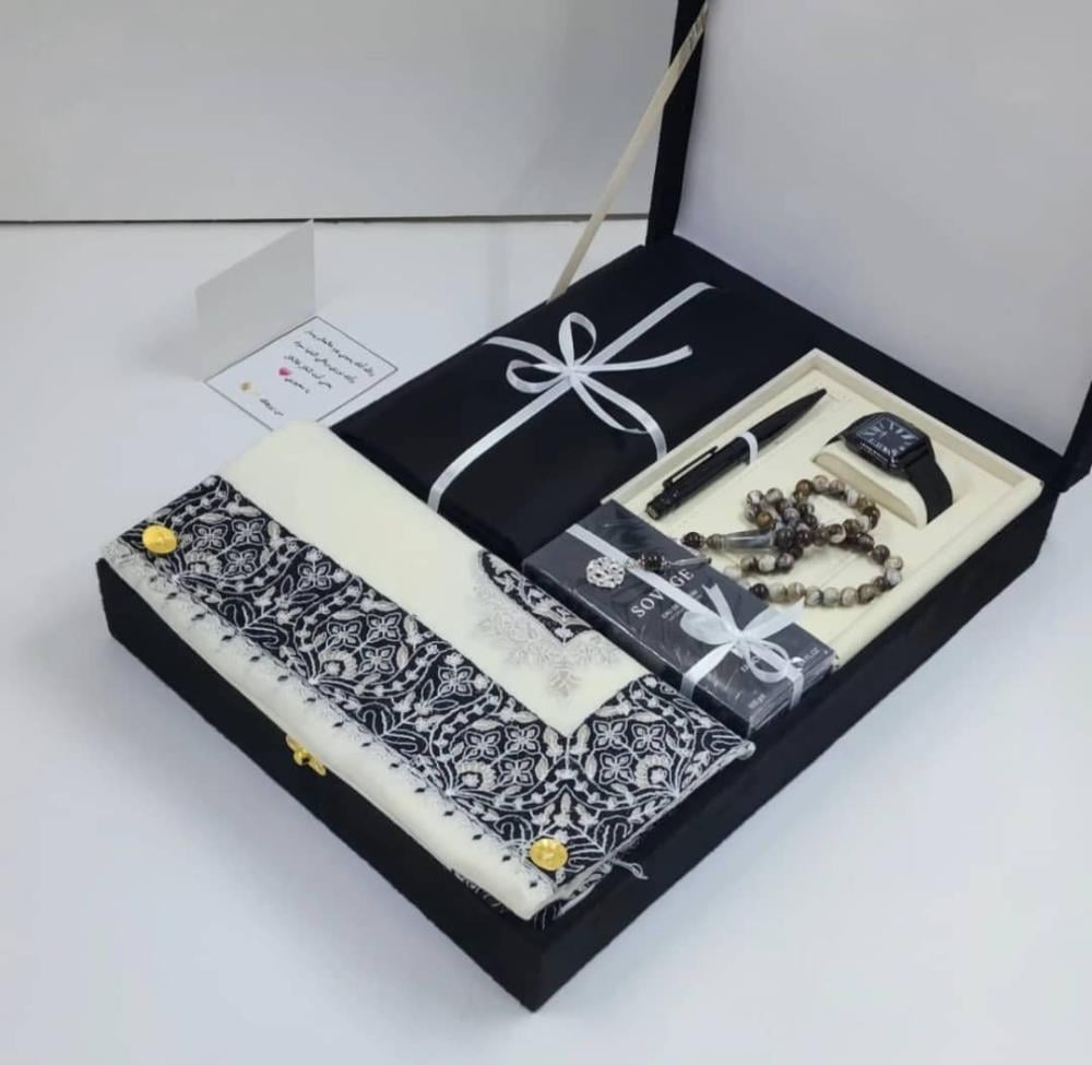 بوكس أنيق وفخم يجمع بين اللمسة الكلاسيكية والذوق الراقي، مثالي كهديّة تعبر عن التميّز والرقي في كل مناسبة.